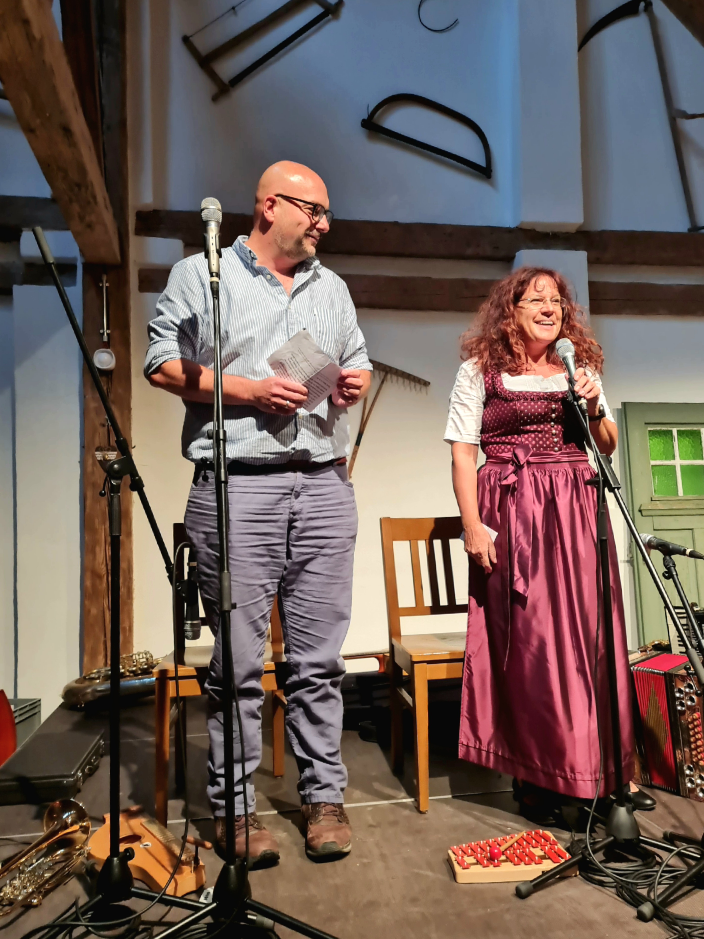 Tommy Beer, 1. Vorsitzender, und Kerstin Jäger, Geschäftsführerin, eröffnen den Abend mit einem "Vergelt’s Gott!". Denn gewidmet wurde der Abend allen Menschen, die durch ihr Engagement dazu beitragen, dass das Brucker Forum seit 50 Jahren ein breites Angebot für katholische Erwachsenenbildung im Landkreis auf die Beine stellt. Auch Hans Well erinnert sich daran, dass bereits seine Mutter Bastelkurse für das Brucker Forum gestaltet hat.