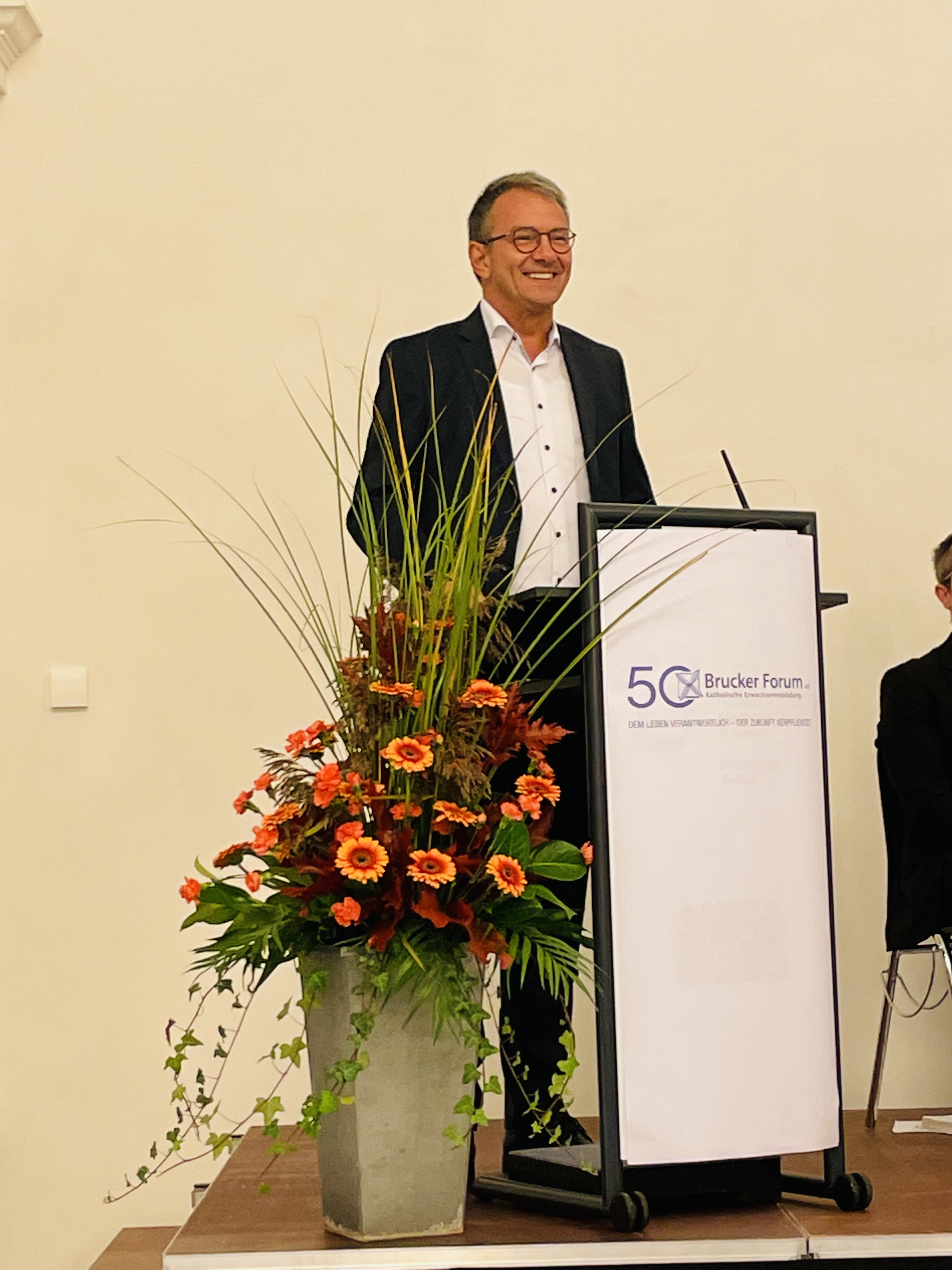 Mit rund 160 Gästen haben wir am Freitag, 07. Oktober, unser 50jähriges Jubiläum mit einer Vesper in der Klosterkirche Fürstenfeld und anschließendem Festakt im Churfürstensaal gefeiert. Frau Prof. Dr. Ursula Münch, Direktorin der politischen Akademie in Tutzing hielt den Festvortrag. Grußworte gab es von Landrat Thomas Karmasin, Ursula Lay (Vorsitzende der Katholischen Erwachsenenbildung in der Erzdiözese München und Freising) und Pfarrer Wolfgang Huber. Wir sagen Danke an alle, die sich in den vergangenen 50 Jahren für das Brucker Forum ehren- und hautpamtlich engagiert, uns ideell oder finanziell unterstützt haben und mit uns gefeiert sowie zum Gelingen des Jubiläums beigetragen haben!